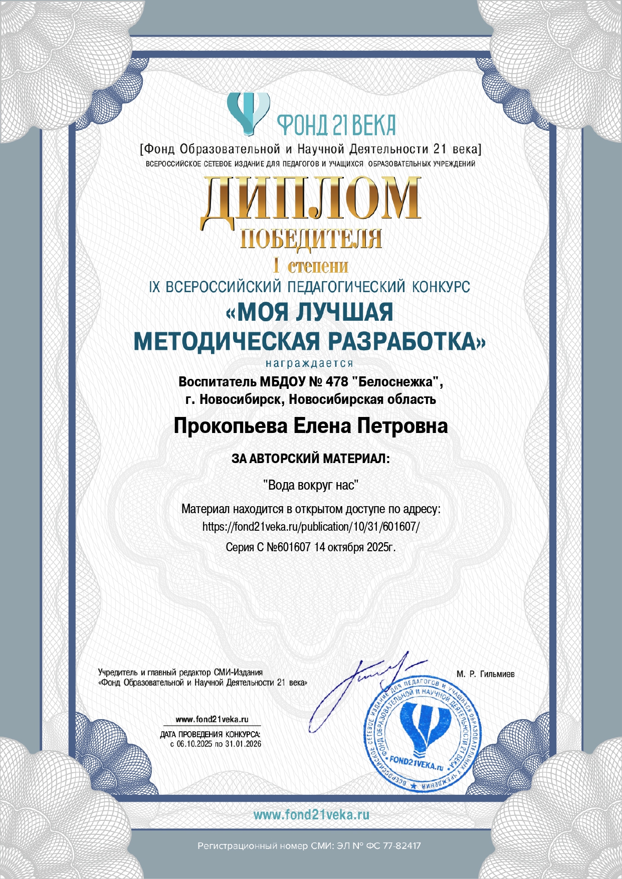 Конкурс ОБразование, ВСЕРОССИЙСКИЙ ПЕДАГОГИЧЕСКИЙ КОНКУРС фонд 21 века методическая разработка, Сценарий НОД "Вода вокруг нас"